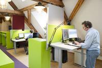 Nach der Erweiterung seines Service-Teams im vergangenen Herbst hat Techpilot in den Umbau des Kundendienst-Zentrums investiert. Unter der Leitung des Architekturbüros Vonmeiermohr entstand ein moderner Arbeitsbereich mit verbesserter Akustik für die ungestörte Kommunikation. Bei der Neukonzeption spielten auch aktuellste ergonomische und farbpsychologische Erkenntnisse eine wesentliche Rolle. ?Mitarbeiter, die sich wohlfühlen, liefern auch einen erstklassigen Service?, unterstreicht Kundendienstleiter Rogé Gronenwald die Wichtigkeit der Maßnahmen. Die runderneuerten Räumlichkeiten befinden sich in einem ehemaligen Transformatorenwerk, dem Techpilot Stammsitz in München. Das Bindeglied zur historischen Gebäudesubstanz bilden neben der offenen Dachkonstruktion die Leuchten aus einer aufgelassenen Industriefertigung in Ostdeutschland.