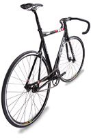 Manche Fixies haben Bremsen, andere nicht – diese werden „brakeless“ genannt. Bestes Beispiel dafür ist das Bahnrad (z. B. Felt TK2, 1.549 $, www.feltracing.com), eine aufs Nötigste reduzierte Wettkampfmaschine und ausschließlich für den Sport auf der Radbahn gedacht. Das Bahnrad ist ein technischer Saurier – den starren Antrieb gab es schon lange vor dem Freilauf. Letzterer wurde erst Ende des 19. Jahrhunderts am Fahrrad eingeführt – und damals von Fachleuten sogar als „der Sicherheit des Radfahrers entgegenwirkend“1 befunden. Heute nutzen hauptsächlich Bahnsportler, Radballer und Kunstradakrobaten den starren Gang ohne Bremsen.