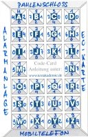 Die Code-Card ist auf der Rückseite einer Visitenkarte abgedruckt - und deshalb immer griffbereit. Durch eine Kombination von Zahlen und Buchstaben wird ein leicht zu bedienendes Verschlüsselungs-System entworfen. Dabei schützt ein einziges, beliebig wählbares Wort bis zu vier PINs zuverlässig. Mit Hilfe des Passwortes kann jede Geheimzahl dann bei Bedarf direkt von der Karte abgelesen werden. Für Unbefugte bleibt es bei einer undurchsichtigen Ziffern-Ansammlung.