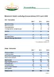 Das Anlagevermögen der Windreich-Gruppe beläuft sich auf rund 114 Mio. ? (Vorjahr: 171,6 Mio. ?). Im Wesentlichen setzt sich dieses aus immateriellen Vermögensgegenständen in Höhe von 43 Mio. ? (Vorjahr: 38,5 Mio. ?), dem Sachanlagevermögen in Höhe von rund 34 Mio. ? (Vorjahr: 44,4 Mio. ?) und den Finanzanlagen in Höhe von rund 38 Mio. ? (Vorjahr: 88,7 Mio. ?) zusammen. Das Umlaufvermögen beläuft sich im Geschäftsjahr 2012 auf rund 435 Mio. ? (Vorjahr: 412,3 Mio. ?). Das Ergebnis der gewöhnlichen Geschäftstätigkeit konnte von rund 2 Mio. ? aus dem Vorjahr auf 10 Mio. ? gesteigert werden.