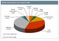 Von den Sukuk-Emissionen in 2008 wurden 10.1% (1.5 Mrd. US$) auf US$ Basis aufgelegt im Vergleich zu 13.9 Mrd. US$ (41%) in 2007, womit der US$ deutlich an Bedeutung verloren hat:
