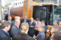 Im Rahmen der Veranstaltung hat die Berliner Stadtreinigung ein Abfallsammelfahrzeug mit Brennstoffzellen- und Energiespeichersystem ausgestellt, welches die Teilnehmer genau unter die Lupe nahmen. Hierbei diskutierten sie angeregt sowohl Vorteile als auch kleine Kinderkrankheiten des Fahrzeugs.