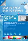 When it comes to width, easy dot 100 clear and easy dot 100 matt round off both the high and low ends of the Neschen range. solvoprint easy dot 100 can now be printed in even wider widths but also on smaller inkjet printers. Solvent-based, latex and UV-curable ink systems are suitable for this purpose. Users can then achieve the best print results and a high colour brilliance.