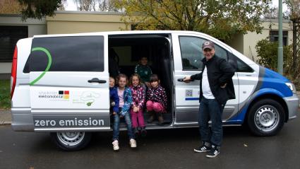 Kinderdorffamilien drei Elektrofahrzeuge des Typs Mercedes Vito E