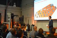 Anschließend betrat STILL-Produkttrainer Florian Meyke die Bühne und erläuterte mit dem Fachvortrag "Praxislösungen für Ihre Sicherheit", dass Fahrzeuge von STILL schon bei der Produktentwicklung so konzipiert werden, dass sie höchsten Sicherheitsansprüchen genügen.