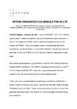(PresseBox) - 02.2012 - Option (EURONEXT: OPTI; OTC: OPNVY), a global leader in wireless connectivity, security and experience, today announces its new 4G LTE module, the GTM801 which is footprint compatible with the 3G LGA module, the GTM601. Option's embedded solutions provide flexible alternatives: manufacturers can design tablets or ultra-portable notebooks using the same layout to offer either 3G with the GTM601 or 4G LTE with the GTM801 to meet diverse market needs.