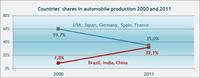 Brazil, India and China, however, could more than quadruple their world market shares during this time being almost up with 32.1% with the formerly leading automobile countries.