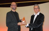 Canto CTO Thomas Schleu, winner of the 2011 DAMMY of the Year award for his contribution to the digital asset management industry, gave the 2012 DAMMY to this year?s winner Steve Cronan, CEO and Founder of 5th Kind, a Los Angeles based software provider. Thomas Schleu also took part in the