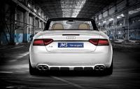 The tuning kit consists of: new frontlip(fits on convertible,sportback and fastback) (299 Euro), fitted easy with glue and screws onto the series frontbumper.At the back a rear diffuser(only convertible and fastback) (279 Euro) in combination with a eisenmann 4 pipe stainless steel exhaust system with 4x90x70mm tips(Euro 1797) . Most other exhausts on the market also possible, but jms prefer for perfect fitting the own system.