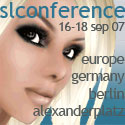 The slconference 2007, organised by cocoate.com, will take place from September 16 – 18, 2007 in Berlin – Alexanderplatz at the Park-Inn Hotel as well as in newBERLIN in Second Life. The Real Life conference includes a one-day workshop (Sunday) and a two-day conference. Expected are around 300 participants for the event, mainly coming from Europe, longing for inspiration for their own Second Life projects and wanting to get informed and introduced to Second Life and other virtual worlds.