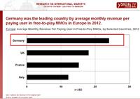 In Europe, the UK led spending rates on digital game content, while Germany was the leading country by average monthly revenue per paying user. Online gaming is a vast market in the UK as nearly 20% of the population of the UK use the Internet to play video games. The online game market there has further growth potential because of the mobile trend. Tablets were the first choice of over a third of mobile device owners to play games in 2013 in the UK, while half of all tablet owners played games. In Germany, consoles and PC are still popular for gaming, but mobile and social platforms are gaining importance. Downloads generated the highest revenue on the online gaming market in Germany in 2013. Mobile game sales also grow, with games for mobile devices making the largest contribution. The most popular types of games played in Germany are strategy, casual and action games.