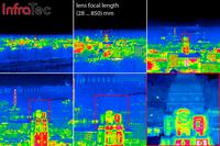 (PresseBox) - Imagine one of the most sophisticated long-range thermal camera systems mated to an incredibly powerfull zoom lens: InfraTec achieved this ? the result are our new camera models ImageIR® 8300 Z and ImageIR® 9300 Z. State-of-the-art InSb detector technology with a resolution of (640 x 512) and (1,280 x 1,024) IR pixel offers most sensitive, high-resolution infrared imaging capacity for 24/7 operability even through fog and smoke, day and night. Frame rates of up to 100 Hz (full-frame mode) support demanding imaging, tracking and monitoring tasks. Our tailored software interface delivers outstanding clear and high-contrast image quality beyond standard thermal imagers. The 30x motorised zoom lens (focal length range: (28 ? 850) mm) achieves a human range detection beyond 15 km with a NFOV of down to 0.6°.