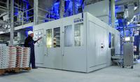 With this packing system the components of valve-bag applicator, filling system, valve sealing unit, control technology, operating unit and discharge belt are all encapsulated inside a dust-tight housing. This means the packing system's surroundings remain clean and the cleaning costs are minimised. Moreover the housing provides for a quieter workplace