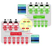 The theoretical concept of the Bridge function is similar to setting up a cascade. The analog matrix (CATCenter NEO) is integrated into the digital system (ControlCenter-Digital or DVICenter). A computer module with analog-to-digital converter (VGA-CPU) integrates the CATCenter NEO's analog user module (UCON) into the digital matrix.