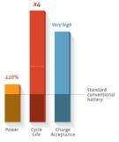 (PresseBox) - 8.2014 - Large performance gains will be seen in the new range of Start-Stop batteries from Exide Technologies (OTCQB: XIDEQ). The new AGM battery will achieve four times longer cycle life, 20% more power and over three times the charge acceptance of a standard conventional battery. Similarly impressive gains will also be seen in Exide's new EFB battery.