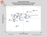 In their recent publication Social Business Vendor Benchmark 2015, the specialists at Experton Group stress the ever evolving important roles that software tools, promoting communication and teamwork, play in companies. Social business is being noticed as a growing market with a very varied field of providers.