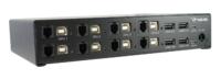The new device features two additional transparent USB 2.0 inputs. One or two flash drives or other USB 2.0 devices may be plugged into USB 2.0 ports on the U-Switch device. When switching to one of the consoles, both USB-HID and USB 2.0 devices can be accessed by the user on that console. This gives convenient access to USB 2.0 data on each monitor without replugging USB drives into the respective console.