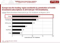 Europe is the global leader in terms of mobile broadband penetration, though by mobile shopper penetration on online buyers it was behind such leaders as Asia-Pacific and the Middle East and Africa. One-third of online shoppers in Europe used their mobile phones to shop last year.