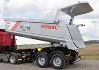 (PresseBox) - Kögel will be showing the 2-axle version of the Kögel tipper trailer for 3-axle tractor units at bauma 2016 in Munich. The slew radius can be adjusted depending on the tractor unit owing to a moveable king pin and the resulting longer wheel base. Like its 3-axle big brother, the 2-axle tipper trailer is also available in two versions with a loading volume of either 24 m³ or 27 m³. It is particularly suited to the hardest of applications on building sites and in gravel pits. It goes without saying that the 2-axle tipper trailer is also available in various body and wall thickness combinations. The body is available in a thickness of 4, 5 or 6 millimetres and the side walls in a thickness of 3, 4 or 5 millimetres.