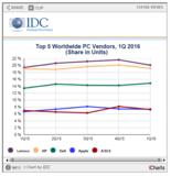 "In the short term, the PC market must still grapple with limited consumer interest and competition from other infrastructure upgrades in the commercial market," said Jay Chou, Research Manager, IDC Worldwide PC Tracker, "Nevertheless, IDC still projects total business IT spending to grow compared to 2015, and as we head toward the end of 2016 things should start picking up in terms of Windows 10 pilots turning into actual PC purchases."