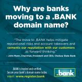 Their reasoning? The Bank-Domain, available exclusively for verified members of the global banking community, is the trusted, verified, and more secure option to support their online presence. By incorporating robust security measures such as mandatory verification, email authentication, and strong encryption ? a .bank.