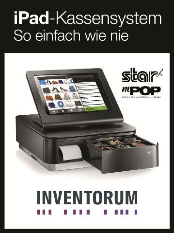 As Annette Tarlton, Marketing Director, Star Micronics EMEA, adds: “We are delighted that INVENTORUM is demonstrating its powerful iPad POS system with Star’s mPOP at our Showroom in Frankfurt. By combining INVENTORUM’s expertise with Star’s wealth of experience, the retail sector can benefit from a reliable, feature-rich and versatile solution that offers the very latest in mPOS technology.”