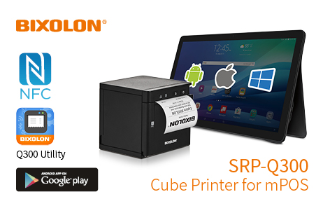 (firmenpresse) - BIXOLON Co., Ltd a leading global mobile, label and POS printer manufacturer today announced the SRP-Q300 3-inch (80mm) Direct Thermal mPOS cube receipt printer with flexible mPOS configuration capabilities. Featuring flexible printing from Android™, iOS™ and Windows® mobile devices, the SRP-Q300 now supports Auto Bluetooth and WLAN Connection via NFC for Android Smart Devices.