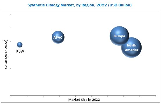 Based on region, the synthetic biology market is segmented into North America, Europe, Asia Pacific, and the Rest of the World (RoW). In 2017, North America is estimated to account for the largest share of the global market. Regarding growth rate, Europe is expected to register the highest growth rate from 2017 to 2022. Factors such as increasing investments for the adoption of adoption of novel synthetic biology technologies, rising R&D funding and collaborations are driving the growth of the market in this region.