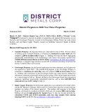 (PresseBox) - District Metals Corp. (TSX-V: DMX) (FRA: DFPP); ("District" or the “Company”) is pleased to provide an update on permitting and planned drill programs on our Tomtebo and Gruvberget Properties located in the Bergslagen Mining District in south-central Sweden, and our Bakar Copper Property located on Northern Vancouver Island in British Columbia.