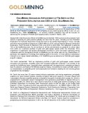 (PresseBox) - GoldMining Inc. (the "Company" or "GoldMining") (TSX: GOLD; NYSE American: GLDG - https://www.commodity-tv.com/ondemand/companies/profil/goldmining-inc/) is pleased to announce the appointment of Tim Smith as Vice President Exploration of the Company and as Chief Executive Officer (“CEO”) of U.S. GoldMining Inc. ("U.S. GoldMining") , its recently created subsidiary that will be focused on advancing the Company's Whistler gold-copper project, located in Alaska, USA.