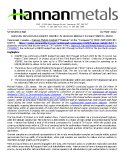 On November 30, 2020 Hannan announced that it had signed a binding letter agreement for a significant Option and Joint Venture Agreement (the “Agreement”) with JOGMEC. Under the Agreement, JOGMEC has the option to earn up to a 75% beneficial interest in the San Martin Project by spending up to US$35,000,000 to deliver to the joint venture (“JV”) a feasibility study.