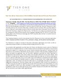 "Tier One Silver Announces C$3.0 Million Non-Brokered Private Placement"