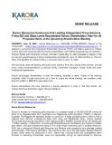 "Karora Resources Announces that Leading Independent Proxy Advisory Firms ISS and Glass Lewis Recommend Karora Shareholders Vote For all Proposed Items at the Upcoming Shareholders Meeting"