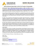 (PresseBox) - Skeena Resources Limited (TSX: SKE, NYSE: SKE) (“Skeena” or the “Company” - https://www.commodity-tv.com/ondemand/companies/profil/skeena-resources-ltd/ ) is pleased to welcome Nalaine Morin as the Company’s new Vice President of Sustainability, effective September 2022. Ms. Morin will join Skeena’s External Affairs & Sustainability team to continue to advance efficient permitting of the Eskay Creek gold-silver project (“Eskay Creek” or the “Project”).