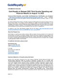"Gold Royalty to Release 2022 Third Quarter Operating and Financial Results on August 15, 2022"