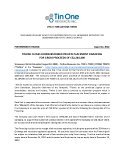 (PresseBox) - TinOne Resources Inc. (TSX-V: TORC) (OTCQB: TORCF) ("TinOne" or the "Company" - https://www.commodity-tv.com/ondemand/companies/profil/tinone-resources-inc/) is pleased to announce that it has closed its final tranche of the oversubscribed non-brokered private placement that was previously announced on July 12, 2022 and July 20, 2022 raising an additional C$95,000. The Company overall raised gross proceeds of C$2,210,400 issuing a total of 22,104,000 units of the Company (the “Units”) at a price of C$0.10 per Unit (the “Financing”).
