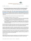 This news release may contain “forward looking information” within the meaning of Canadian securities legislation and “forward-looking statements” within the meaning of the United States Private Securities Litigation Reform Act of 1995 (collectively, “forward-looking statements”). These forward-looking statements are made as of the date of this news release and Copper Mountain does not intend, and does not assume any obligation, to update these forward-looking statements, whether as a result of new information, future events or otherwise, except as required under applicable securities legislation.