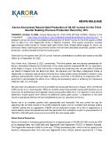 "Karora Announces Record Gold Production of 38,437 ounces for the Third Quarter Beating Previous Production Record by 25%"