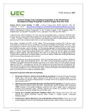 Strong ESG Foundation:Starting from the environmental baseline work and ESG initiatives established by Rio Tinto, UEC intends to continue to develop and apply high industry standards in stakeholder engagement, safety, and environmental stewardship. UEC looks forward to engaging with local communities and other stakeholders in the Athabasca Basin in developing this Project for the benefit of future generations.