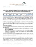 This news release may contain “forward looking information” within the meaning of Canadian securities legislation and “forward-looking statements” within the meaning of the United States Private Securities Litigation Reform Act of 1995 (collectively, “forward-looking statements”). These forward-looking statements are made as of the date of this news release and Copper Mountain does not intend, and does not assume any obligation, to update these forward-looking statements, whether as a result of new information, future events or otherwise, except as required under applicable securities legislation.