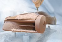 The cavity is milled into a lightweight mold material such as EPS or RAKU® TOOL SB-0080 styling board. Following the application of the release agent, the cavity is filled using a special casting process. Milling is quick and easy. Applications include styling, design, master, cubing, and data control models.
