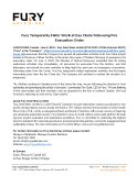 (PresseBox) - Fury Gold Mines Limited (TSX: FURY, NYSE American: FURY) ("Fury" or the "Company" - https://www.commodity-tv.com/ondemand/companies/profil/fury-gold-mines-ltd) announces that the Company has paused all exploration activities at its Eau Claire project located in the Eeyou Istchee Territory in the James Bay region of Quebec following an emergency fire evacuation order. On June 4, 2023, the Minister of Natural Resources mandated that all mining exploration activities stop immediately, all personnel be evacuated from the territory, and that helicopters and aircraft be made available to help fight fires and carry out emergency evacuations. Following notice from the Crown, Fury has temporarily halted exploration activities and has begun evacuating crews from the Eau Claire site. The Company will continue to monitor the situation as it progresses.