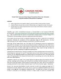 Canada Nickel Company Inc. is advancing the next generation of nickel-sulphide projects to deliver nickel required to feed the high growth electric vehicle and stainless steel markets. Canada Nickel Company has applied in multiple jurisdictions to trademark the terms NetZero Nickel™, NetZero Cobalt™ and NetZero Iron™ and is pursuing the development of processes to allow the production of net zero carbon nickel, cobalt, and iron products. Canada Nickel provides investors with leverage to nickel in low political risk jurisdictions. Canada Nickel is currently anchored by its 100% owned flagship Crawford Nickel-Cobalt Sulphide Project in the heart of the prolific Timmins-Cochrane mining camp. For more information, please visit www.canadanickel.com.