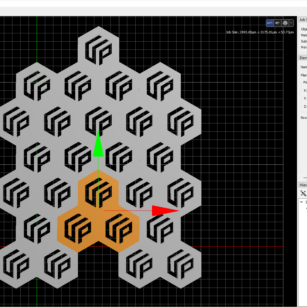 Furthermore, also the resolution of the printing process can be altered as it runs. In consequence, parts that require less resolution can be printed at the lowest necessary one, together in the same printing run with elements that require much higher resolution. “One can print less defined parts quickly and step-by-step increase the resolution of the process as one comes to the finer defined structural elements”, explains Denise Hirner. “In this way very neat printing of complex structures with different requirements for resolution becomes possible and this can save up to 50% time.” The software therefore greatly enlarges the versatility of the NanoOne printer range that already benefits from the patented adaptive resolution technology allowing the widening of the laser beam by a factor of 10x for any given objective.