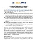U.S. GoldMining Inc. is an exploration and development company focused on advancing the Whistler gold-copper project, located 105 miles (170 km) northwest of Anchorage, Alaska, U.S.A. The Whistler project consists of several gold-copper porphyry deposits and exploration targets within a large regional land package totaling approximately 217.5 sq km (53,700 acres). Visit www.usgoldmining.us for more information.