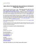 "Alpha Lithium Files Significantly Improved Resource Estimate for Tolillar Salar, Argentina"