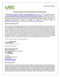 (PresseBox) - Uranium Energy Corp (NYSE American: UEC, the “Company” or “UEC” - https://www.commodity-tv.com/ondemand/companies/profil/uranium-energy-corp/) is pleased to report, in accordance with NYSE American requirements, the filing of the Company’s quarterly report on Form 10-Q for the quarter ended October 31, 2023 with the U.S. Securities and Exchange Commission (the “SEC”). This Form 10-Q filing, which includes the Company’s interim condensed consolidated financial statements, related notes thereto and management’s discussion and analysis, is available for viewing on the SEC’s website at http://www.sec.gov/edgar.shtml or on the Company's website at www.uraniumenergy.com.