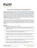 The Company is also pleased to announce the appointment of Phil van Staden, the current Interim CFO of the Company, to the position of Chief Financial Officer effective as of January 1, 2024. Mr. van Staden joined Fury in 2020 and brings over 15 years of diverse international experience in various accounting roles and industries throughout South Africa and Canada. He holds B. Commerce and B. Commerce Honours degrees respectively from the University of Pretoria and the University of South Africa.