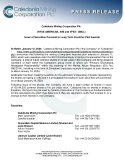 Following issue of the shares, the Company will have a total number of shares in issue of 19,194,525 common shares of no par value each. Caledonia has no shares in treasury; therefore, this figure may be used by holders of securities in the Company as the denominator for the calculations by which they determine if they are required to notify their interest in, or a change to their interest in, the Company.