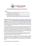 Canada Nickel Company Inc. ("Canada Nickel" or the "Company") (TSXV: CNC) (OTCQX: CNIKF) - https://www.commodity-tv.com/ondemand/companies/profil/canada-nickel-company-inc/ - is pleased to announce that the Company has entered today into a Subscription Agreement with Samsung SDI Co., Ltd. (“Samsung SDI”) to make a US$18.5 million investment in Canada Nickel at a price of C$1.57 per Common Share. Upon closing of the private placement contemplated in the Subscription Agreement, Samsung SDI will own approximately 15.6 million shares of the common shares of Canada Nickel, representing approximately 8.7% of the Company’s issued and outstanding shares on a non-diluted basis.